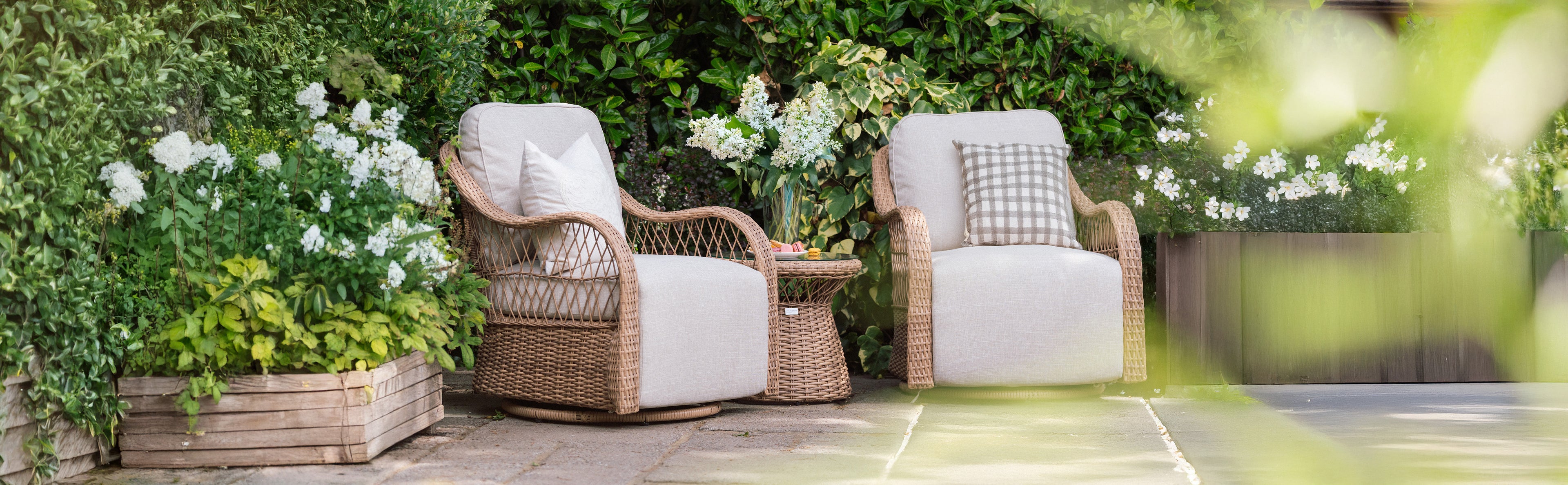 Flora Rattan Bistro Table Set with 2 Swivel Armchairs - Natural