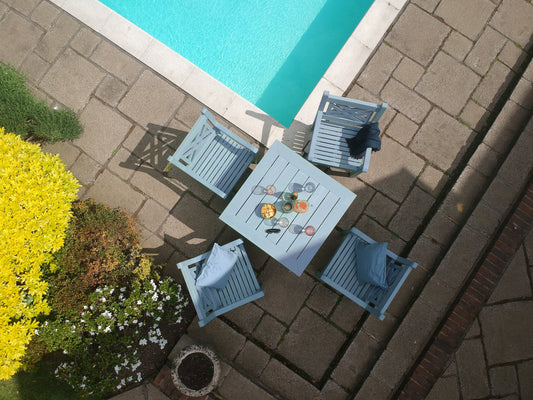Winawood Wood Effect Square Dining Table - L98.3cm x D98.3cm x H76cm - Powder Blue