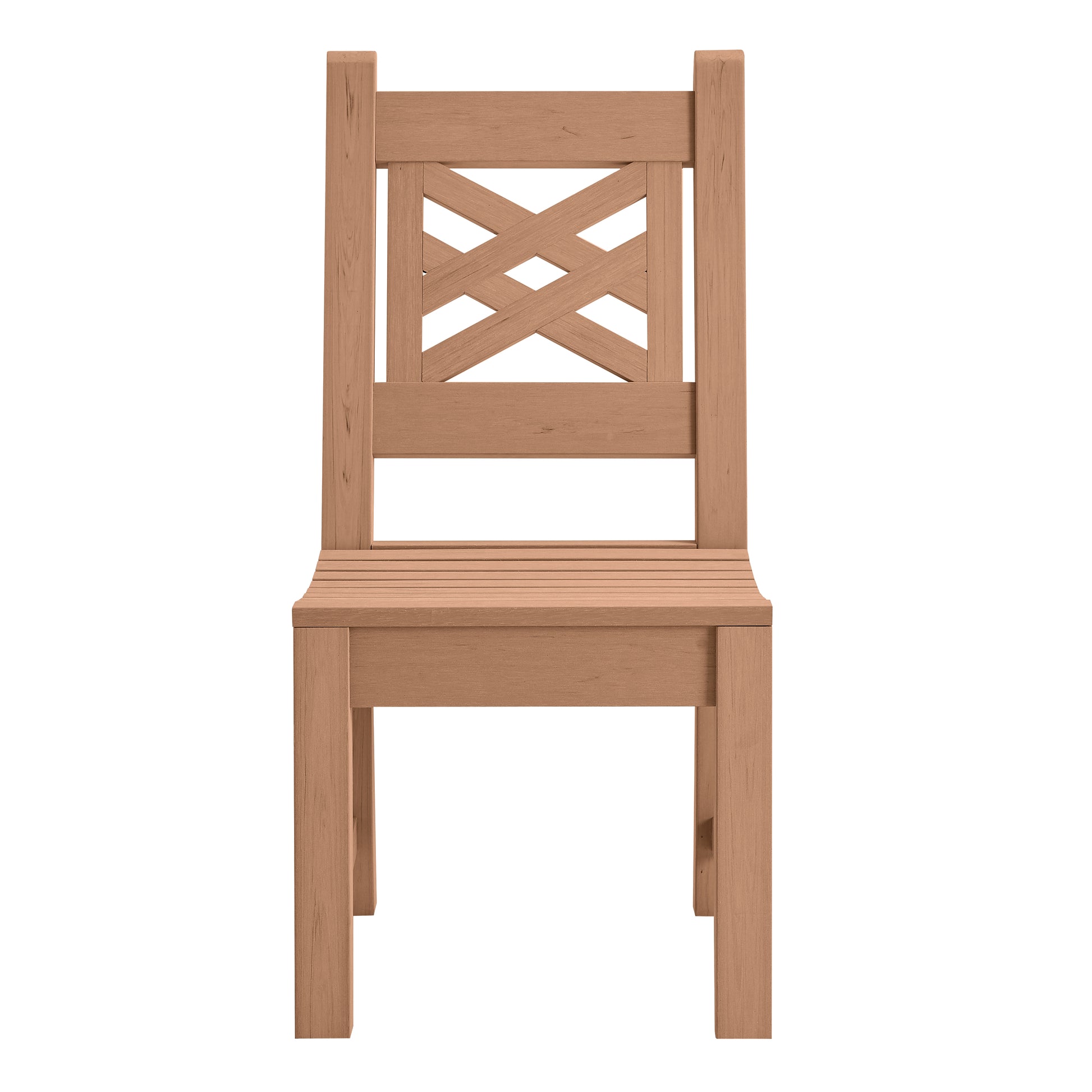 The Winawood Speyside Side Chair combines a modern design with the timeless look of wood. The Speyside model features a stylish cross-back design and clean, straight lines. crafted from a high-performance synthetic polymer blend, including recycled plastic, this chair is both durable and eco-conscious.